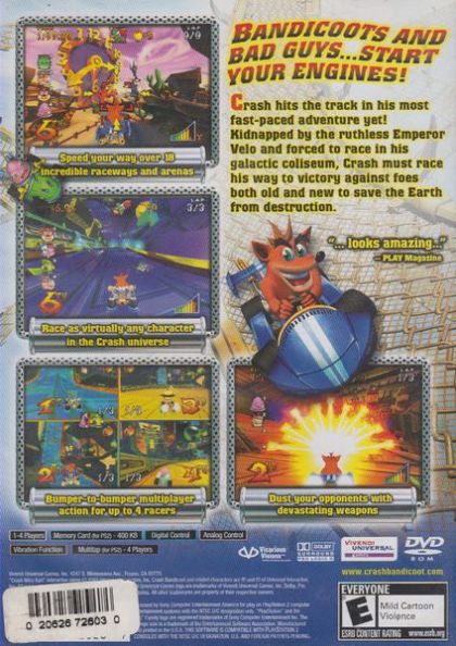 In Crash Nitro Kart, Crash will hit the track in his fastest-paced adventure yet! Kidnapped by the ruthless Emperor Velo and forced to race in his galactic coliseum, Crash must speed his way to victory in order to save Earth from destruction...but it won't be easy, as he must compete against foes both old and new before a final showdown with Velo himself!