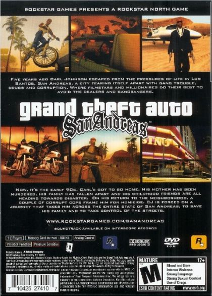 Five years ago Carl Johnson escaped from the pressures of life in Los Santos, San Andreas...a city tearing itself apart with gang trouble, drugs and corruption. Where filmstars and millionaires do their best to avoid the dealers and gangbangers.