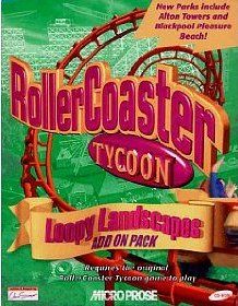 Roller Coaster Tycoon Expansion Pack: Loopy Landscapes is a double expansion pack that also includes the first expansion pack, Corkscrew Follies. Loopy Landscapes, and features all-new attractions, such as new types of roller coasters and rides, including the Jet Ski ride, plus new park shops, such as T-shirt stands, donut stands and a coffee café. There are also six new park themes, among them a winter park and an urban park. Thirty new scenarios, including desert, arctic and medieval castle themes, challenge players with unique terrain and new scenario objectives. Several real amusement parks from England have also been included to see if players can handle the real thing.