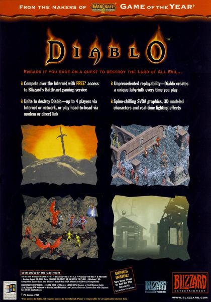 Diablo, The Lord of Terror, has grasp of horror on the once peaceful town of Tristram. Demons dwell on the streets at night, and horrible screams disturb the troubled sleep of the citizens as forces of Darkness gather in the dungeons below the town. As if the situation isn't worse enough, the once righteous King Leoric has fallen into madness and was killed by his own men. His son, Prince Albrecht, and the Arch-Bishop Lazarus have mysteriously disappeared.