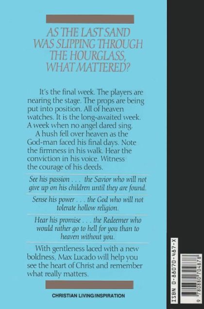 Master storyteller and best-selling author Max Lucado invites you: "Let's follow Jesus on his final journey. For by observing his, we may learn how to make ours. And discover what matters to God."
