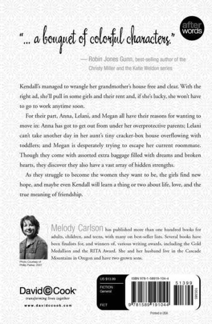 Kendall’s managed to wrangle her grandmother’s house—free and clear—except for the rules. No male roommates. But that’s ok, with the right ad she’ll pull in some girls, their rent and if she’s lucky, she won’t have to go to work any time soon.For their part, Anna, Lelani, and Megan all have their reasons for wanting to move in: Anna has got to get out from under her overprotective parents; Lelani can’t take another day in her aunt’s tiny crackerbox house overflowing with toddlers and Megan needs a place free of her current roommate from Hades. Though they come with assorted extra baggage filled with broken hearts and dreams, they will discover they also have a vast array of hidden strengths.As they struggle to become the women they want to be, they’ll find new hope and maybe even Kendall will learn a thing or two about life, love and the true meaning of friendship.
