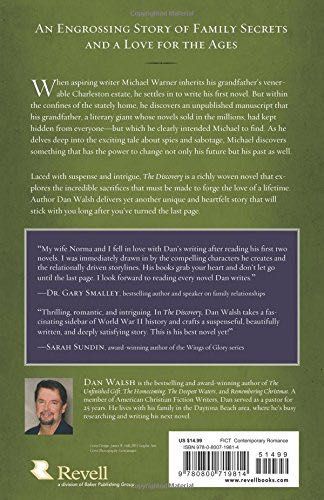 Gerard Warner was not only a literary giant whose suspense novels sold in the millions, he was also a man devoted to his family, especially his wife of nearly 60 years. When he dies he leaves his Charleston estate to his grandson, Michael, an aspiring writer himself. Michael settles in to write his own first novel and discovers an unpublished manuscript his grandfather had written, something he'd kept hidden from everyone but clearly intended Michael to find. Michael begins to read an exciting tale about Nazi spies and sabotage, but something about this story is different from all of Gerard Warner's other books. It's actually a love story. As Michael delves deeper into the story he discovers something that has the power to change not only his future but his past as well. Laced with suspense and intrigue, The Discovery is a richly woven novel that explores the incredible sacrifices that must be made to forge the love of a lifetime. Author Dan Walsh delivers yet another unique and heartfelt story that will stick with readers long after they turn the last page. Review "Dan Walsh's novel-within-a-novel is rich with intrigue, history and romance. Character-driven and wistful without hampering the suspense of the plot's steady pace, The Discovery is a sublime delight that shouldn't be missed." - USA Today Dan Walsh is the bestselling and award-winning author of The Unfinished Gift, The Homecoming, The Deepest Waters, and Remembering Christmas. A member of American Christian Fiction Writers, Dan served as a pastor for 25 years. He lives with his family in the Daytona Beach area, where he's busy researching and writing his next novel.