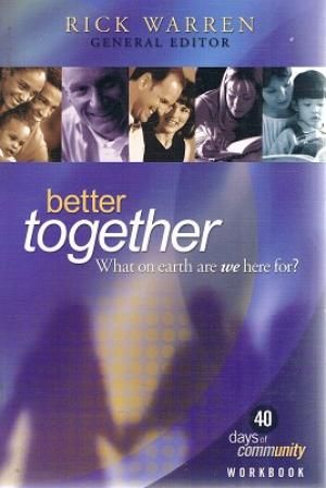 Better Together is a dynamic individual or small group study guide that will help you learn how to fulfill God's five purposes for your life. It includes the biblical support behind each purpose, the ways it applies to you and your circle of influence, and how you can use this knowledge to benefit God's kingdom. From the beginning, God planned for Christians to fulfill his purposes in community with each other in our church families, small groups, and in the world as a whole. Why did God plan it this way? Because we're better together! Better Together Study Guide will deepen your understanding of how God uses community for your own good and growth, as well as help you cultivate deeper relationships with those around you. Learn to fulfill God's purposes ... discover how we are better together. This study guide is designed for use with the Better Together DVD and Better Together Devotional Journal.