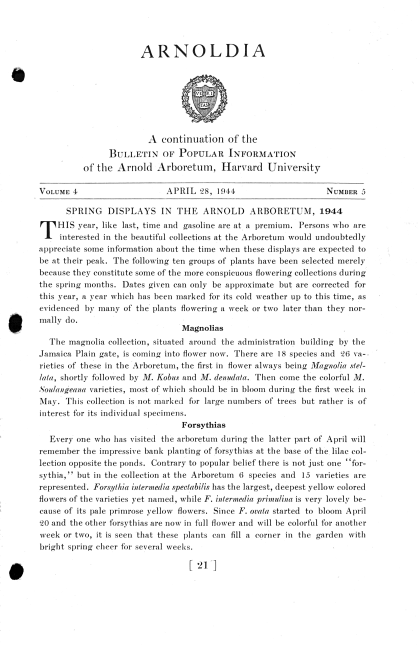 Arnoldia: Bulletin of Popular Information of the Arnold Arboretum, Harvard University: vol. 4, Issue #5