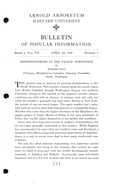 Arnoldia: Bulletin of Popular Information of the Arnold Arboretum, Harvard University: vol. Series 4, Volume VII, Issue #2