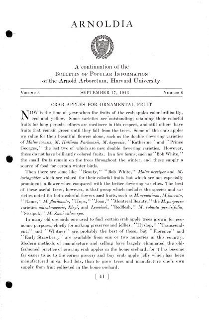 Arnoldia: Bulletin of Popular Information of the Arnold Arboretum, Harvard University: vol. 3, Issue #8