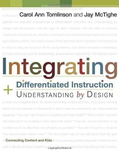 Teachers struggle every day to bring quality instruction to their students. Beset by lists of content standards and accompanying ""high-stakes"" accountability tests, many educators sense that both teaching and learning have been redirected in ways that are potentially impoverishing for those who teach and those who learn. Educators need a model that acknowledges the centrality of standards but also ensures that students truly understand content and can apply it in meaningful ways. For many educators, Understanding by Design addresses that need. Simultaneously, teachers find it increasingly difficult to ignore the diversity of the learners who populate their classrooms. Few teachers find their work effective or satisfying when they simply ""serve up"" a curriculum-even an elegant one-to students with no regard for their varied learning needs. For many educators, Differentiated Instruction offers a framework for addressing learner variance as a critical component of instructional planning. In this book the two models converge, providing readers fresh perspectives on two of the greatest contemporary challenges for educators: crafting powerful curriculum in a standards-dominated era and ensuring academic success for the full spectrum of learners. Each model strengthens the other. Understanding by Design is predominantly a curriculum design model that focuses on what we teach. Differentiated Instruction focuses on whom we teach, where we teach, and how we teach. Carol Ann Tomlinson and Jay McTighe show you how to use the principles of backward design and differentiation together to craft lesson plans that will teach essential knowledge and skills for the full spectrum of learners. Connecting content and kids in meaningful ways is what teachers strive to do every day. In tandem, UbD and DI help educators meet that goal by providing structures, tools, and guidance for developing curriculum and instruction that bring to students the best of what we know about effective teaching and learning.