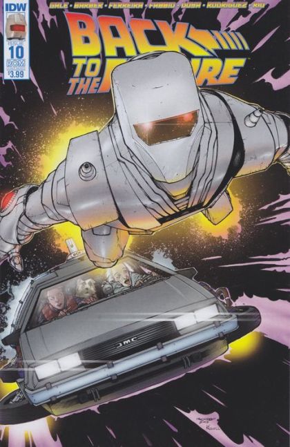 DOC'S STORY! Is he a man out of time? A visitor from another reality? An alien? A robot? Eighteen hyper-intelligent hamsters in a rubber human suit? Well, definitely not the last one-but the mystery of memoryless Doc Brown is solved... just in time for things to really get exciting. Bullet points: Part of IDW's month-long variant cover program, celebrating the return of ROM!