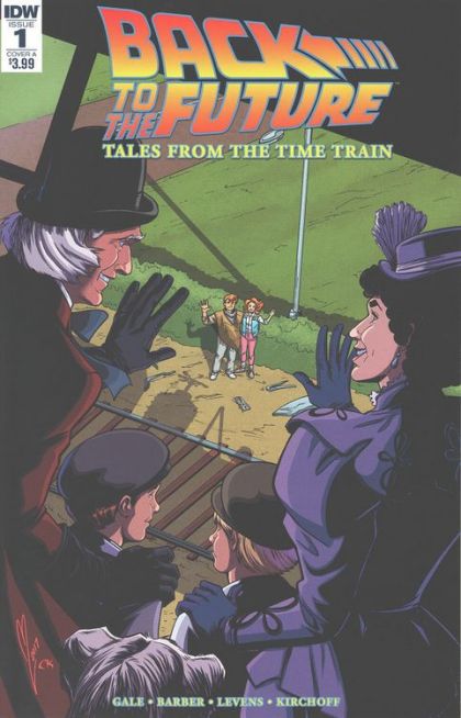It's 1893 and at last, Doc Brown fulfills his promise to Clara as he's completed the project he's been working on: the Time Train! But where in time and space will the Brown family go on their inaugural trip? And what could possibly go wrong if and when they get there? Lots! Join Gale, Barber, and Megan Levens as they kick off the newest Back to the Future series! • Finally! Find out what happens to Doc, Clara, and the whole family after the end of the third film! • Part of IDW's Artist's Edition Cover Month!