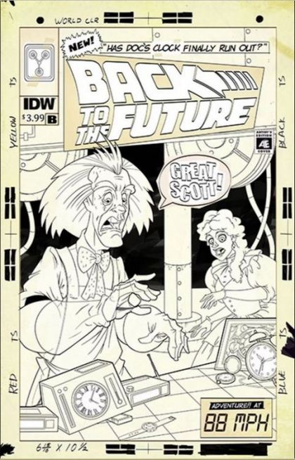 It's 1893 and at last, Doc Brown fulfills his promise to Clara as he's completed the project he's been working on: the Time Train! But where in time and space will the Brown family go on their inaugural trip? And what could possibly go wrong if and when they get there? Lots! Join Gale, Barber, and Megan Levens as they kick off the newest Back to the Future series! • Finally! Find out what happens to Doc, Clara, and the whole family after the end of the third film! • Part of IDW's Artist's Edition Cover Month!