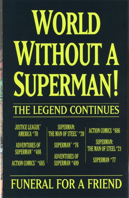 Doomsday is in Metropolis, and the only one left to defend the city is Superman. They go at it, blow by blow, leaving a wake of destruction behind the likes of which the city has never seen. Then, the unspeakable happens.