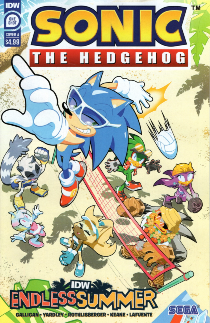 Do you ever wish summer could last forever? Well, at IDW, it can! We're bringing you an endless summer with everyone's favorite characters in four unique one-shots! Wave goodbye to the office and say hello to the beach! Sonic drags Jewel on a well-deserved beach day to spend time with her besties, Tangle and Whisper! But when they all settle in for some rest and relaxation... they realize the Babylon Rogues had the same idea... at the same beach. The only way to settle this is with a totally tubular beach showdown!