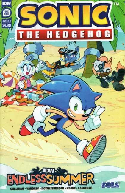 Do you ever wish summer could last forever? Well, at IDW, it can! We're bringing you an endless summer with everyone's favorite characters in four unique one-shots! Wave goodbye to the office and say hello to the beach! Sonic drags Jewel on a well-deserved beach day to spend time with her besties, Tangle and Whisper! But when they all settle in for some rest and relaxation... they realize the Babylon Rogues had the same idea... at the same beach. The only way to settle this is with a totally tubular beach showdown!