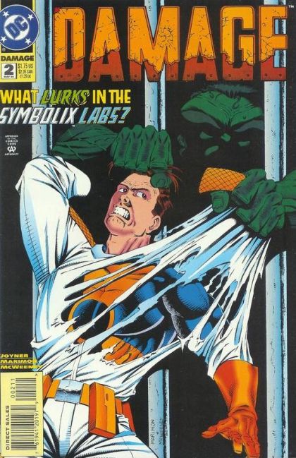 Damage escapes his attackers, Megafire and Flak, and storms Symbolix Labs to rescue his parents...but before he can free them and learn the truth of his origins, something devastating happens! Now Damage must face the monstrous creations of Symbolix. Plus, a mysterious figure from the Golden Age returns! Written by Tom Joyner, with art and cover by Bill Marimon and Tom McWeeney. New Format. Cover price $1.75.