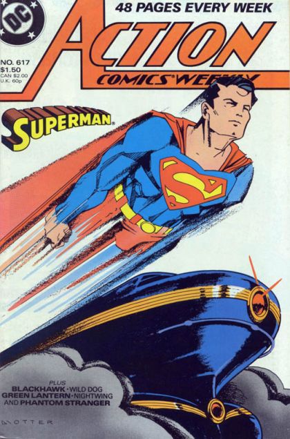 Green Lantern: Assault on a Green - Hal tries to patch things up with Arisia, but can't get through to her. Instead, he heads out looking for Castle and Siphon, but finds a whole lot of their friends instead.Blackhawk: Seems Like Old Times... - The group knows they've been lied to, but they're willing to accept that given the paycheck. One thing Janos isn't will to accept is the new radio operator that's been recruited.Wild Dog: Fatal Distraction, Chapter 3 - Puppy Dog Tale - Wild Dog has a jealous husband well under control, when a child admirer steps in to "help" with the situation.Superman: Missing Person - Superman is disappointed at his inability to question Culpepper, so he heads home to see if he can get more information from Bob Galt. When he arrives, Galt is nowhere to be found.Phantom Stranger: Channel Switching - The Phantom Stranger finds a charlatan clairevoyant who has stumbled upon genuine magic. She channels a cursed Atlantean warrior, and it's up to the Phantom Stranger to set things right.Nightwing: Motives - Nightwing has finally managed to get a lead on Speedy, whose true goal stands revealed.