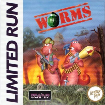 Worms is an ultra-fast-paced game of team strategy for up to 16 players. It's a little bit "Lemmings™" and a lotta bit "Terminator™"... only more pink and squishy, with bazookas, homing missiles and cluster bombs blasting the screen in an unrelenting fury, only the moist can survive!