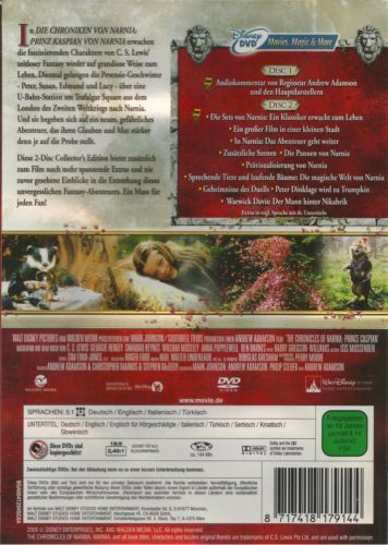 One year after their incredible adventures in the Lion, the Witch and the Wardrobe, Peter, Edmund, Lucy and Susan Pevensie return to Narnia to aid a young prince whose life has been threatened by the evil King Miraz. Now, with the help of a colorful cast of new characters, including Trufflehunter the badger and Nikabrik the dwarf, the Pevensie clan embarks on an incredible quest to ensure that Narnia is returned to its rightful heir.