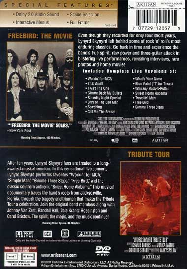 Tribute Tour - After ten years, Lynyrd Sknyrd fans are treated to a long-awaited musical reunion. In the sensational live concert, Lynyrd Skynyrd performs favorites "Workin' for MCA," "Simple Man," "Gimme Three Steps," "Free Bird," and the classic Southern anthem, "Sweet Home Alabama." This musical documentary traces the band's roots from Jacksonville, Florida, through the tragedy and triumph that makes the Tribute Tour a celebration. Join the original band members along with Johnny Van Zant, Randall Hall, Dale Krantz Rossington and Carol Bristow. The spirit, the magic, and the music continue!