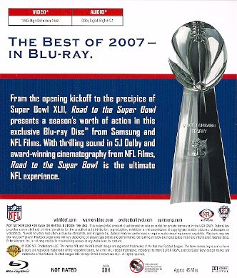 Presented for the first time in Blu-Ray High Definition by Samsung. From the opening kickoff to the precipice of Super Bowl XLII, Road to the Super Bowl presents a season's worth of action in this exclusive Blu-ray Disc from Samsung and NFL Films. With thrilling sound in 5.1 Dolby and award-winning cinematography from NFL Films, Road to the Super Bowl is the ultimate NFL experience.