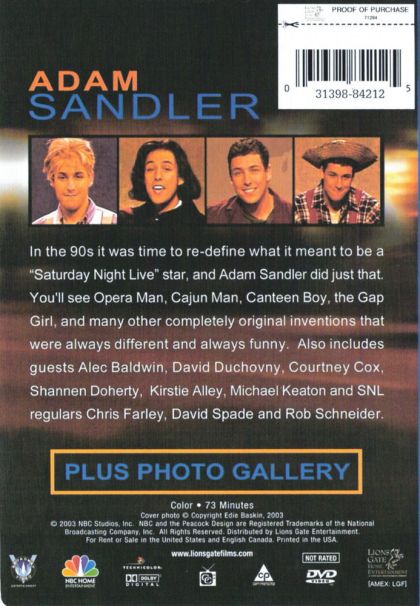 Before he was Little Nicky or Billy Madison, Adam Sandler was a regular on Saturday Night Live. This movie features some of his best material. Songs like Hanukkah and the Christmas song. Skits of Sandler being the Opera Man which is always a classic. A skit of The Denise show where he talks about an ex-girlfriend he just can't forget. Sandler as a camper being abused by guest star Alec Baldwin. There are also a few skits with Chris Farley. One is a commercial of homo-erotic beer and the popular Zagats, where Sandler and Farley play an old couple who must decide what restaurant they wish to go to for their anniversary. Also features other skits starring other SNL characters like Mike Meyers and David Spade.