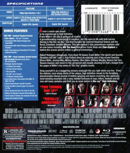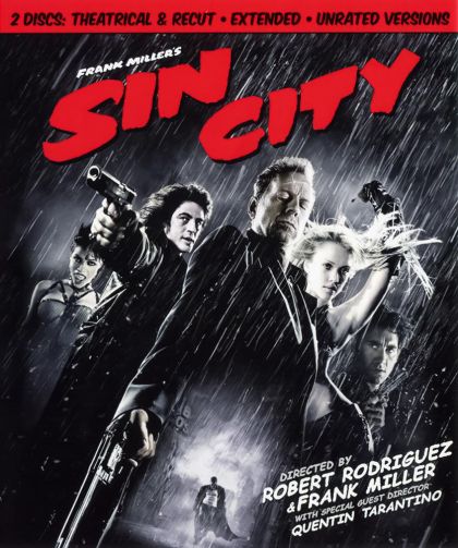 The first of three films based on the beautiful comic world of Frank Miller. Sin City depicts the comic book almost page for page with its heavy contrast black and white extremely violent and graphic imagery. Sin City is set in a dangerous and dark Basin City where corruption, sex and violence is everyday life.