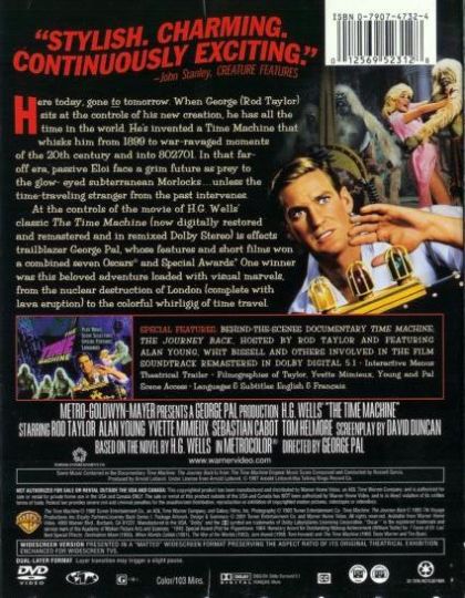 This is the original adaptation of H.G. Well’s classic book The Time Machine. George (Rod Taylor) plays the time traveling hero. After inventing the time machine, his peers do not believe him. He thus starts a journey to prove his machine works and finds out about the future of the human race. On his journey he sees mankind’s rise in technology and war-like tendencies. After an apocalyptical war, he is knocked out and his time machine ventures millions of years into the future. Upon waking he finds himself in a Garden of Eden where child-like humans, called the Eloi, are living. They are uneducated and helpless, they are fed and clothed by the Morlocks. The Morlocks are the cannibalistic creatures that live underground and prey upon the Eloi. With the help of a beautiful Eloi, Weena (Yvette Mimieux) he might just save the remaining human race and discover the secrets of evolution.