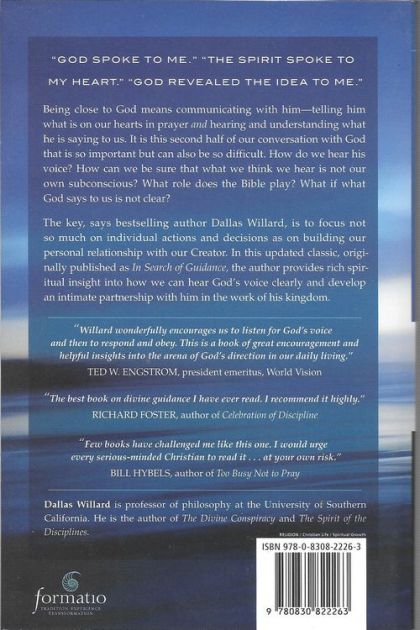"God spoke to me." "The Spirit spoke to my heart." "God revealed the idea to me." Being close to God means communicating with him--telling him what is on our hearts in prayer and hearing and understanding what he is saying to us. It is this second half of our conversation with God that is so important but that can also be so difficult. How do we hear his voice? How can we be sure that what we think we hear is not our own subconscious? What role does the Bible play? What if what God says to us is not clear? The key, says best-selling author Dallas Willard, is to focus not so much on individual actions and decisions as on building our personal relationship with our Creator. In this updated classic, originally published as In Search of Guidance, the author provides rich spiritual insight into how we can hear God's voice clearly and develop an intimate partnership with him in the work of his kingdom.