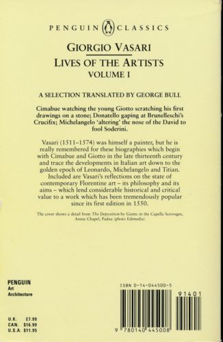 In his Lives of the Artists of the Italian Renaissance, Vasari demonstrated a literary talent that outshone even his outstanding abilities as a painter and architect. Through character sketches and anecdotes he depicts Piero di Cosimo shut away in his derelict house, living only to paint; Giulio Romano's startling painting of Jove striking down the giants; and his friend Francesco Salviati, whose biography also tells us much about Vasari's own early career. Vasari's original and soaring vision plus his acute aesthetic judgements have made him one of the most influential art historians of all time.