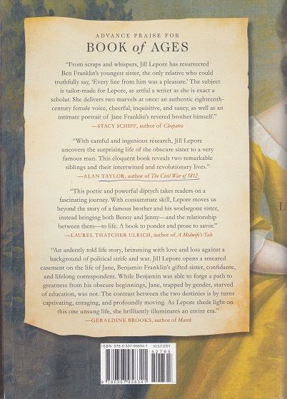 National Book Award Finalist From one of our most accomplished and widely admired historians, a revelatory portrait of Benjamin Franklin's youngest sister and a history of history itself. Like her brother, Jane Franklin was a passionate reader, a gifted writer, and an astonishingly shrewd political commentator. Unlike him, she was a mother of twelve. Benjamin Franklin, who wrote more letters to his sister than he wrote to anyone else, was the original American self-made man; his sister spent her life caring for her children. They left very different traces behind. Making use of an amazing cache of little-studied material, including documents, objects, and portraits only just discovered, Jill Lepore brings Jane Franklin to life in a way that illuminates not only this one woman but an entire world--a world usually lost to history. Lepore's life of Jane Franklin, with its strikingly original vantage on her remarkable brother, is at once a wholly different account of the founding of the United States and one of the great untold stories of American history and letters: a life unknown.