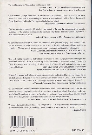 Destined to become a classic in American history and biography, David Herbert Donald’s Lincoln is a masterly account of how one man’s extraordinary political acumen steered the Union to victory in the Civil War, and of how his soaring rhetoric gave meaning to that agonizing struggle for nationhood and equality. This fully rounded biography of America’s sixteenth President is the product of Donald’s half-century of study of Lincoln and his times. In preparing it, Donald has drawn more extensively than any previous writer on Lincoln’s personal papers and those of his contemporaries, and he has taken full advantage of the voluminous newly discovered records of Lincoln’s legal practice. He presents his findings with the same literary skill and psychological understanding exhibited in his previous biographies, which have received two Pulitzer Prizes. Donald brilliantly traces Lincoln’s rise from humble origins in Kentucky to prominent positions in legal and political circles in Illinois, and then to the pinnacle of the presidency. He shows how, in all these roles, Lincoln repeatedly demonstrated his enormous capacity for growth, which enabled one of the least experienced and most poorly prepared men ever elected to high office to become a giant in the annals of American politics. Much more than a political biography, Donald’s Lincoln reveals the development of the future President’s character and shows how his private life helped to shape his public career. Donald’s biography is written from Lincoln’s point of view. Donald seats us behind the President’s desk, where we read the papers and reports he received and wrote, meet the politicians and generals and ordinary citizens who visited his office, and observe him evaluating the evidence before him and making the decisions that shaped modern America.