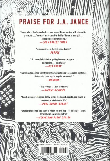 New York Times bestselling author J.A. Jance delivers another pulse-pounding tale of suspense where no one is safe from a . . .FATAL ERROR. Ali Reynolds begins the summer thinking her most difficult challenge will be surviving a six-week- long course as the lone forty-something female at the Arizona Police Academy—not to mention taking over the 6:00 AM shift at her family’s restaurant while her parents enjoy a long overdue Caribbean cruise. However, when Brenda Riley, a colleague from Ali’s old news broadcasting days in California, shows up in town with an alcohol problem and an unlikely story about a missing fiancé, Ali reluctantly agrees to help. The man posing as Brenda’s fiancé is revealed to be Richard Lowensdale, a cyber-sociopath who has left a trail of broken hearts in his virtual wake. When he is viciously murdered, the women he once victimized are considered suspects. The police soon focus their investigation on Brenda, who is already known to have broken into Richard’s home and computer before vanishing without a trace. Attempting to clear her friend’s name, Ali is quickly drawn into a web of online intrigue that may lead to a real-world fatal error.