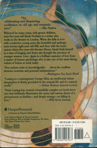 Love, Again tells the story of a 65-year-old woman who falls in love and struggles to maintain her sanity. Widowed for many years, with grown children, Sarah is a writer who works in the theater in London. During the production of a play, she falls in love with a seductive young actor, the beautiful and androgynous 28-year-old Bill, and then with the more mature 35-year-old director Henry. Finding herself in a state of longing and desire that she had thought was the province of younger women, Sarah is compelled to explore and examine her own personal history of love, from her earliest childhood desires to her most recent obsessions. The result is a brilliant anatomy of love from a master of human psychology who remains one of the most daring writers of fiction at work today.