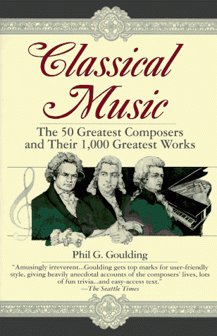 MAKE A SOUND INVESTMENT IN CLASSICAL MUSICWho are the ten most important classical composers? Who in the world was Palestrina? Why did Stravinsky's "Rite of Spring" cause a riot? Which five of each important composer's works should you buy? What is a concerto and how does it differ from a sonata?Maybe you don't know the answers to these questions; author Phil Goulding certainly didn't. When Goulding first tried to learn about classical music, he found himself buried in an avalanche of technical terms and complicated jargon--so he decided to write the book he couldn't find.The result is a complete classical music education in one volume. Comprehensive, discriminating, and delightfully irreverent, Classical Music provides such essential information as:* Rankings of the top 50 composers (Bach is #1. Borodin is #50) * A detailed and anecdotal look at each composer's life and work * The five primary works of each composer and specific recommended CDs for each. * Further great works of each composer--if you really like him * Concise explanations of musical terminology, forms, and periods * A guide to the parts and history of the symphony orchestra "This book uses every conceivable gimmick to immerse readers in the richness of classical music: lists, rankings, sidebars devoted to lively anecdotes, and catchy leads."--The Washington Post"One terrific music appreciation book...The information is surprisingly detailed but concisely presented. Goulding's writing style is breezy yet mature....[He] has raised music appreciation from a racket to a service."--The Arizona Daily Star