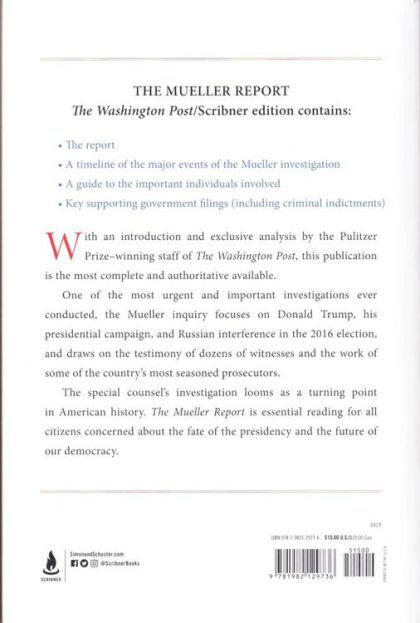 This edition from The Washington Post/Scribner contains: —The long-awaited Report On The Investigation Into Russian Interference In The 2016 Presidential Election —An introduction by The Washington Post titled “A President, a Prosecutor, and the Protection of American Democracy” —A timeline of the major events of the Special Counsel’s investigation from May 2017, when Robert Mueller was appointed, to the report's delivery —A guide to individuals involved, including in the Special Counsel’s Office, the Department of Justice, the FBI, the Trump Campaign, the White House, the Trump legal defense team, and the Russians —Key documents in the Special Counsel’s investigation, including filings pertaining to General Michael T. Flynn, Paul Manafort, Michael Cohen, Roger Stone, and the Russian internet operation in St. Petersburg. Each document is introduced and explained by Washington Post reporters. One of the most urgent and important investigations ever conducted, the Mueller inquiry focuses on Donald Trump, his presidential campaign, and Russian interference in the 2016 election, and draws on the testimony of dozens of witnesses and the work of some of the country’s most seasoned prosecutors. The special counsel’s investigation looms as a turning point in American history. The Mueller Report is essential reading for all citizens concerned about the fate of the presidency and the future of our democracy.