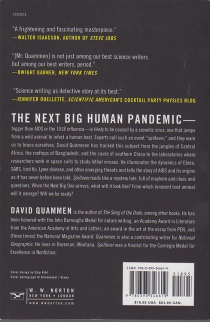 A masterpiece of science reporting that tracks the animal origins of emerging human diseases, Spillover is “fascinating and terrifying … a real-life thriller with an outcome that affects us all” (Elizabeth Kolbert, author of The Sixth Extinction). In 2020, the novel coronavirus gripped the world in a global pandemic and led to the death of hundreds of thousands. The source of the previously unknown virus? Bats. This phenomenon—in which a new pathogen comes to humans from wildlife—is known as spillover, and it may not be long before it happens again. Prior to the emergence of our latest health crisis, renowned science writer David Quammen was traveling the globe to better understand spillover’s devastating potential. For five years he followed scientists to a rooftop in Bangladesh, a forest in the Congo, a Chinese rat farm, and a suburban woodland in New York, and through high-biosecurity laboratories. He interviewed survivors and gathered stories of the dead. He found surprises in the latest research, alarm among public health officials, and deep concern in the eyes of researchers. Spillover delivers the science, the history, the mystery, and the human anguish of disease outbreaks as gripping drama. And it asks questions more urgent now than ever before: From what innocent creature, in what remote landscape, will the Next Big One emerge? Are pandemics independent misfortunes, or linked? Are they merely happening to us, or are we somehow causing them? What can be done? Quammen traces the origins of Ebola, Marburg, SARS, avian influenza, Lyme disease, and other bizarre cases of spillover, including the grim, unexpected story of how AIDS began from a single Cameroonian chimpanzee. The result is more than a clarion work of reportage. It’s also the elegantly told tale of a quest, through time and landscape, for a new understanding of how our world works—and how we can survive within it.