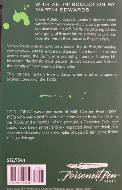 Mystery crime fiction written in the Golden Age of Murder "The intricacies of the characters' relationships and the trove of secrets Scotland Yard Inspector Macdonald uncovers make for riveting reading." --Booklist Bruce Attleton dazzled London's literary scene with his first two novels--but his early promise did not bear fruit. His wife Sybilla is a glittering actress, unforgiving of Bruce's failure, and the couple lead separate lives in their house at Regent's Park. When Bruce is called away on a sudden trip to Paris, he vanishes completely--until his suitcase and passport are found in a sinister artist's studio, the Belfry, in a crumbling house in Notting Hill. Inspector Macdonald must uncover Bruce's secrets, and find out the identity of his mysterious blackmailer. This intricate mystery from a classic writer is set in a superbly evoked London of the 1930s.