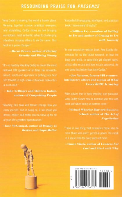 New York Times bestsellerWall Street Journal bestseller USA Today bestseller Publishers Weekly bestseller Forbes "15 Best Business Books of the Year"People "Book of the Week"AARP Editor's Pick Translated into 34 languages and counting"Presence feels at once concrete and inspiring, simple but ambitious--above all, truly powerful." -- New York Times Book Review Have you ever left a nerve-racking challenge and immediately wished for a do over? Maybe after a job interview, a performance, or a difficult conversation? The very moments that require us to be genuine and commanding can instead cause us to feel phony and powerless. Too often we approach our lives' biggest hurdles with dread, execute them with anxiety, and leave them with regret. By accessing our personal power, we can achieve "presence," the state in which we stop worrying about the impression we're making on others and instead adjust the impression we've been making on ourselves. As Harvard professor Amy Cuddy's revolutionary book reveals, we don't need to embark on a grand spiritual quest or complete an inner transformation to harness the power of presence. Instead, we need to nudge ourselves, moment by moment, by tweaking our body language, behavior, and mind-set in our day-to-day lives. Amy Cuddy has galvanized tens of millions of viewers around the world with her TED talk about "power poses." Now she presents the enthralling science underlying these and many other fascinating body-mind effects, and teaches us how to use simple techniques to liberate ourselves from fear in high-pressure moments, perform at our best, and connect with and empower others to do the same.Brilliantly researched, impassioned, and accessible, Presence is filled with stories of individuals who learned how to flourish during the stressful moments that once terrified them. Every reader will learn how to approach their biggest challenges with confidence instead of dread, and to leave them with satisfaction instead of regret.