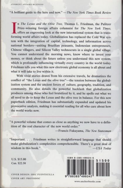 From one of our most perceptive commentators and winner of the National Book Award, a comprehensive look at the new world of globalization, the international system that, more than anything else, is shaping world affairs today. As the Foreign Affairs columnist forThe New York Times, Thomas L. Friedman has traveled the globe, interviewing people from all walks of contemporary life: Brazilian peasants in the Amazon rain forest, new entrepreneurs in Indonesia, Islamic students in Teheran, and the financial wizards on Wall Street and in Silicon Valley. Now Friedman has drawn on his years on the road to produce an engrossing and original look at globalization. Globalization, he argues, is not just a phenomenon and not just a passing trend. It is the international system that replaced the Cold War system; the new, well-greased, interconnected system: Globalization is the integration of capital, technology, and information across national borders, in a way that is creating a single global market and, to some degreee, a global village. Simply put, one can't possibly understand the morning news or one's own investments without some grasp of the system. Just one example: During the Cold War, we reached for the hot line between the White House and the Kremlin--a symbol that we were all divided but at least the two superpowers were in charge. In the era of globalization, we reach for the Internet--a symbol that we are all connected but nobody is totally in charge. With vivid stories and a set of original terms and concepts, Friedman offers readers remarkable access to his unique understanding of this new world order, and shows us how to see this new system. He dramatizes the conflict of "the Lexus and the olive tree"--the tension between the globalization system and ancient forces of culture, geography, tradition, and community. He also details the powerful backlash that globalization produces among those who feel brutalized by it, and he spells out what we all need to do to keep the system in balance. Finding the proper balance between the Lexus and the olive tree is the great drama of he globalization era, and the ultimate theme of Friedman's challenging, provocative book--essential reading for all who care about how the world really works.
