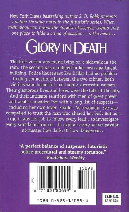 Even in the mid-twenty-first century, during a time when genetic testing usually weeds out any violent hereditary traits before they can take over, murder still happens. The first victim is found lying on a sidewalk in the rain. The second is murdered in her own apartment building. Police Lieutenant Eve Dallas has no problem finding connections between the two crimes. Both victims were beautiful and highly successful women. Their glamorous lives and loves were the talk of the city. And their intimate relations with men of great power and wealth provide Eve with a long list of suspects-including her own lover, Roarke.