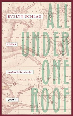 The Poetry Book Society Recommended Translation for Summer 2018. The Austrian poet and novelist Evelyn Schlag, whose 2004 Selected Poems received the coveted Schlegel Tieck Prize, returns with All under One Roof. Once more, Karen Leeder's brilliant translations render a selection of Schlag's most recent poems into English. The book draws on two substantial German-language collections, Sprache von einem anderen Holz (2008) and verlangsamte raserei (2014). There is also a new essay by the author in which she discusses the sources, politics, and strategies of her writing. Love remains a central theme for Schlag, but an associative inward journey with new diction, and new orthography, is underway. Rüdiger Görner in Die Presse responded to the vibrancy of what he called the "Sprachpulsate" (pulses of language): "Evelyn Schlag's poems have a kind of discreet presence; once spoken they have claimed their permanent place in the lyric cosmos." Leeder's selection traces a uniquely Austrian imagination at the heart of contemporary European poetry.