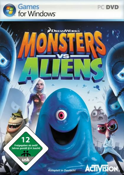 Based on the DreamWorks Animation 3D feature film, the Monsters vs. Aliens video game puts the fate of the planet in players' hands as they lead a dynamic team of five misfit monsters on a mission to save the worldas only they can. The game allows fans to experience the movie's action and humor while playing as The Missing Link, the macho half-ape, half-fish; the gelatinous, indestructible and always hungry B.O.B.; and Ginormica, the 49-foot-11-inch tall woman and Insectosaurus, the 350-foot tall grub. Players utilize each character's distinct strengths, sizes and abilities to battle giant alien robots that are wreaking havoc on earth. Friends or family members can join in the excitement at anytime as the world's most brilliant scientist, Dr. Cockroach, Ph.D., in the unique co-op multiplayer mode.