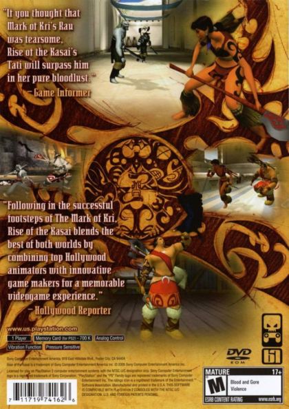 Rise of the Kasai presents a new and innovative approach to fighting adventure games. With the critically-acclaimed combat system, gamers can attack in stealth mode or use the best weapon available for the situation. Up to nine opponents in the player's range can be attacked by using the right analog stick to select and assign specific or multiple buttons for lethal combos. Combined with artistically sketched movies, and a colorful cast of characters, the engaging storyline of Rise of the Kasai will immerse gamers into a world of dark magic, discovery and conflict.