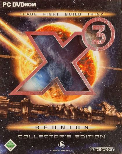 X³: REUNION continues to lead the way in offering players the ultimate open ended game play experience, backed by an addictive storyline and intense combat/trading action. Utilising the 'X³ Reality' engine, X³ pushes the graphical boundary to movie quality in-game graphics. TRADE in a new economy, dynamically reactive in pricing relative to supply and demand. FIGHT individual dog fights or command full-scale fleets against massive enemy armadas. Budding trade entrepreneurs can BUILD interconnecting factories to create huge space borne complexes, to truly mass produce commodities. THINK through a professional screen-written story line, to unravel the destiny of the galaxy.