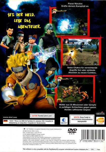 NARUTO: Uzumaki Chronicles introduces a lush, never-before-seen 3D world that will test the players' Ninjutsu skills as Naruto, the feisty orphan who wants to become the most respected and admired ninja of all time. A brand new story drives the missions as players experience the trials and tribulations of a ninja-in-training - fierce competition from fellow students and constant challenges from their teachers. Players can collect status-boosting chips and plates to customize all aspects of Naruto's abilities and face-off against multiple enemies using either close combat moves or long-range weapons like shurikens and explosive cards. With familiar characters like Kakashi, Sasuke and Neji that can swoop in for assistance, "NARUTO: Uzumaki Chronicles" offers mini-games and lethal attacks straight from the popular anime series to satiate any aspiring ninja.