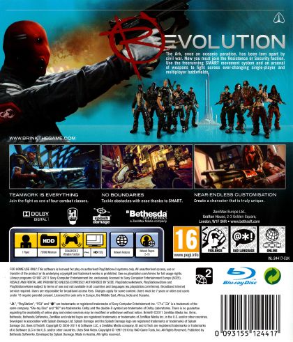 Brink is an immersive shooter that blends single-player, co-op, and multiplayer gameplay into one seamless experience, allowing you to develop your character across all modes of play. You decide the role you want to assume in the world of Brink as you fight to save yourself and mankind's last refuge for humanity. Brink offers a compelling mix of dynamic battlefields, extensive customization options, and an innovative control system that will keep you coming back for more.