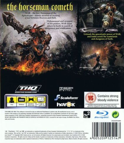 Penned by legendary comic book artist Joe Madureira (X-Men, Battle Chasers, The Ultimates), Darksiders: Wrath of War is set in a Post-Apocalyptic demon-ravaged world where evil forces have prematurely brought about the end of the time. Originally sent to oversee the destruction of Earth, the Four Horsemen of the Apocalypse have been betrayed by their master, stripped of their powers and cast down to Earth. Players take on the role of WARthe first of the Four Horsemenas he embarks on a brutal quest of vengeance and revenge against the forces that betrayed him with the help of his phantom steed RUIN. Darksiders: Wrath of War features open-world exploration, a deep combat system and a huge arsenal of modern and mythical weapons.