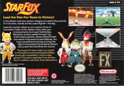 In the distant Lylat star system, imagine yourself at the controls of a futuristic, heavily armed, space fighter - Arwing. Lead the counter-attack on an invasion force of hundreds of alien tanks, fighter ships, laser gun emplacements and super battleships. Maneuver at warp speed through fog-enshrouded canyons, dense asteroid belts and waves of the enemy's best defense. You must use skill and cunning to fight to the enemy's home planet Venom and smash the Core Brain for victory!