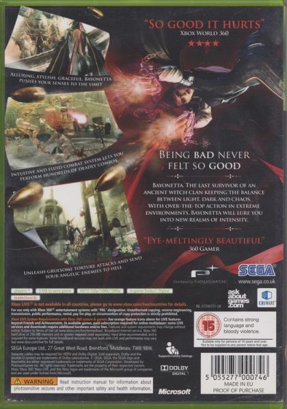 Bayonetta is a cinematic, stylized action game from the famed creative mind of renowned game developer, Hideki Kamiya. The game's protagonist is a graceful, gun-wielding witch with powers beyond the comprehension of mere mortals. Facing off against countless fantastic enemies in stylish yet action-packed combat, Bayonetta uses outlandish finishing moves to take the action genre to a new level of excellence.