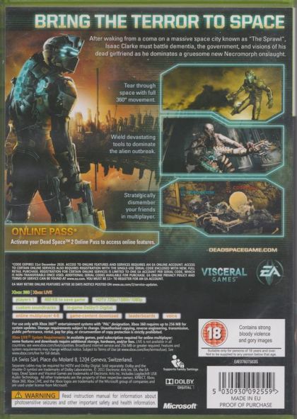 Engineer Isaac Clarke returns in Dead Space 2 for another blood-curdling adventure in the sequel to the critically acclaimed Dead Space. After waking from a coma on a massive space city known as "The Sprawl", the lone survivor of a horrific alien infestation finds himself confronting a catastrophic new nightmare. Battling dementia, hunted by the government, and haunted by visions of his dead girlfriend, Isaac will do whatever it takes to save himself and dominate the gruesome onslaught.